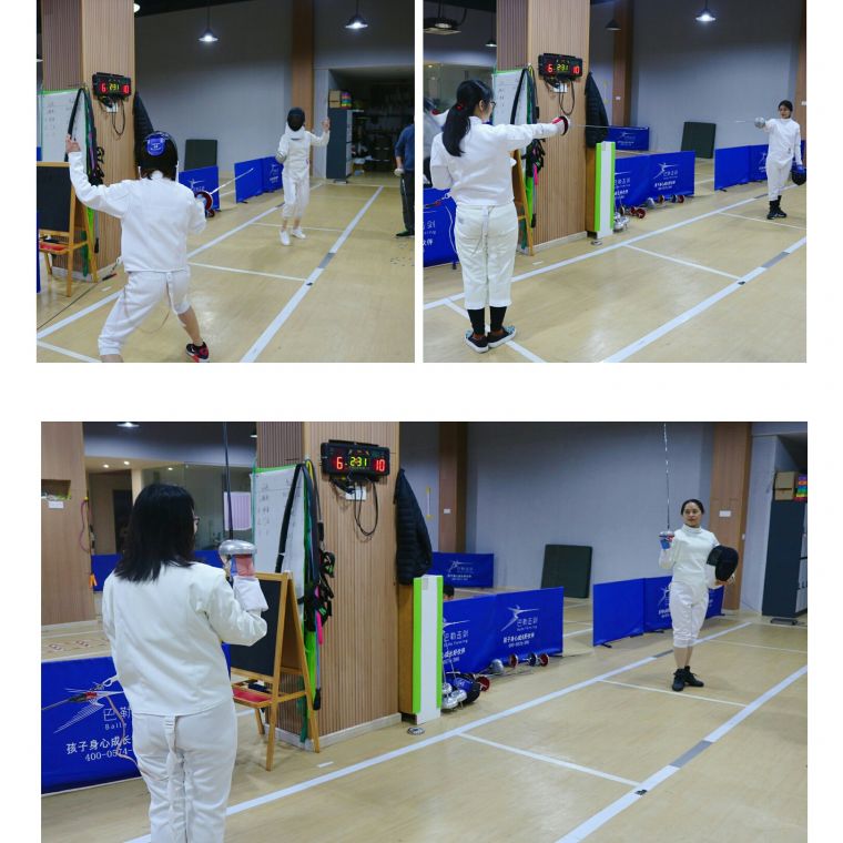 擊劍俱樂部教練結(jié)合視頻,先為大家簡單地介紹了擊劍的歷史文化,以及重劍、花劍和佩劍的區(qū)別。同時(shí),教練還講解了三個(gè)劍種各自的競技特點(diǎn)、比賽規(guī)則,使大家對擊劍比賽有了初步的了解,為之后的實(shí)踐活動打下基礎(chǔ)。
