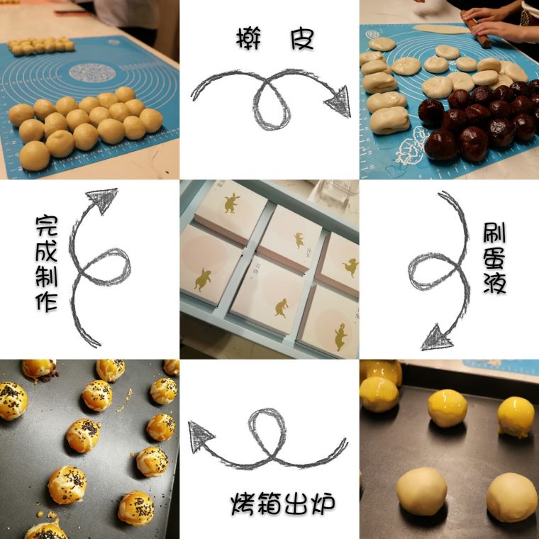 在老師專(zhuān)業(yè)示范和講解之后,大家迫不及待地拿起工具開(kāi)始制作,忙得不亦樂(lè)乎,還時(shí)不時(shí)與身邊同事互相交流著剛才的教學(xué)示范。面粉、蛋黃、豆沙,空氣中香甜四處彌漫;搟面、烘烤、包裝,勞動(dòng)中充滿(mǎn)歡聲笑語(yǔ)。在包好的月餅上涂上蛋黃液,再撒上芝麻,送入烤箱中加熱30分鐘??粗@些親手制作的月餅新鮮出爐,每個(gè)人都異常滿(mǎn)足,紛紛拍照留念。雖然每個(gè)人都是第一次動(dòng)手制作月餅,但是都做得有模有樣,大家相互欣賞著哪個(gè)做的好看,哪組做的快,興致勃勃地相互夸獎(jiǎng)著成品佳作,感受濃濃的節(jié)日氣氛。
